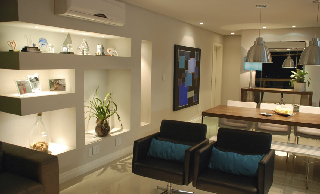 Os Forros Drywall atendem às mais exigentes performances técnicas e oferecem inúmeras possibilidades estéticas. São ideais para a execução de estruturas fixas, planas, curvas ou removíveis. Duráveis, resistentes e versáteis, além de serem aplicados na execução de tetos, também podem ser empregados em detalhes decorativos de sancas, rebaixos para a composição de volumes de teto e, frequentemente, são combinados com projetos de iluminação.